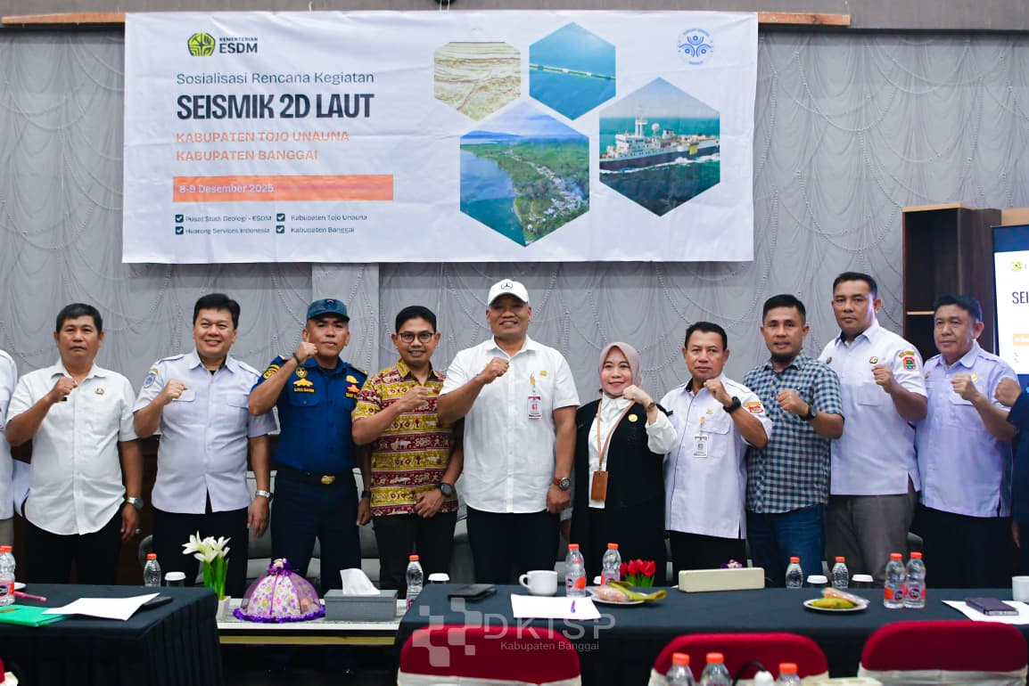 LIRIK BANGGAI – Pemerintah Kabupaten Banggai melalui Bagian Sumber Daya Alam (Bag. SDA) bersama PT. Huatong Service Indonesia melangsungkan Sosialisasi Rencana Kegiatan Seismik 2D Laut Kabupaten Banggai dan Kabupaten Tojo Una-Una pada Rabu (10/12/2025) di Hotel Kota Luwuk